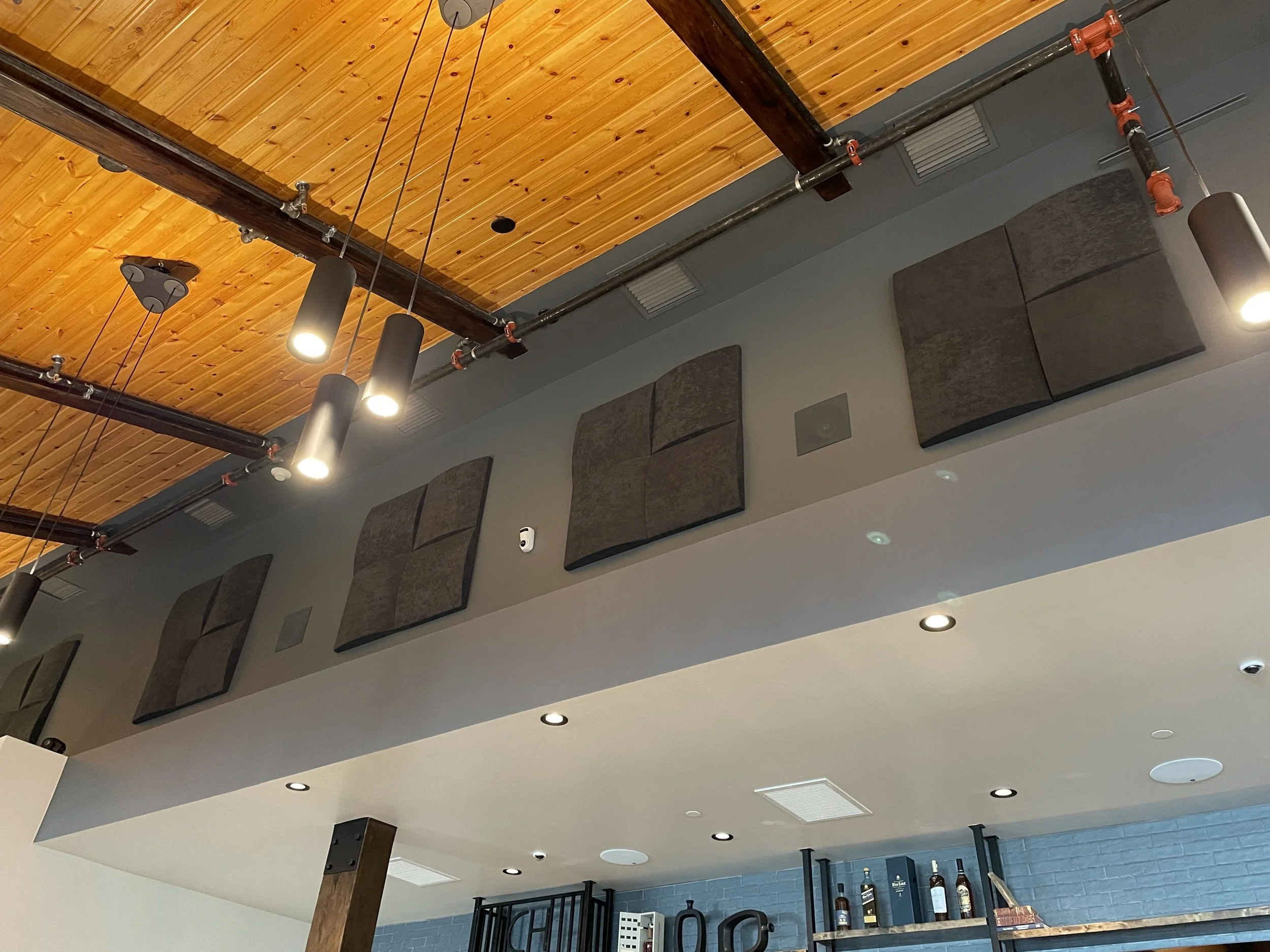 Behind the scenes, commercial‑grade speakers and amplification are carefully matched and calibrated for the room’s size, materials, and layout. This ensures reliable performance day after day, even during peak hours.